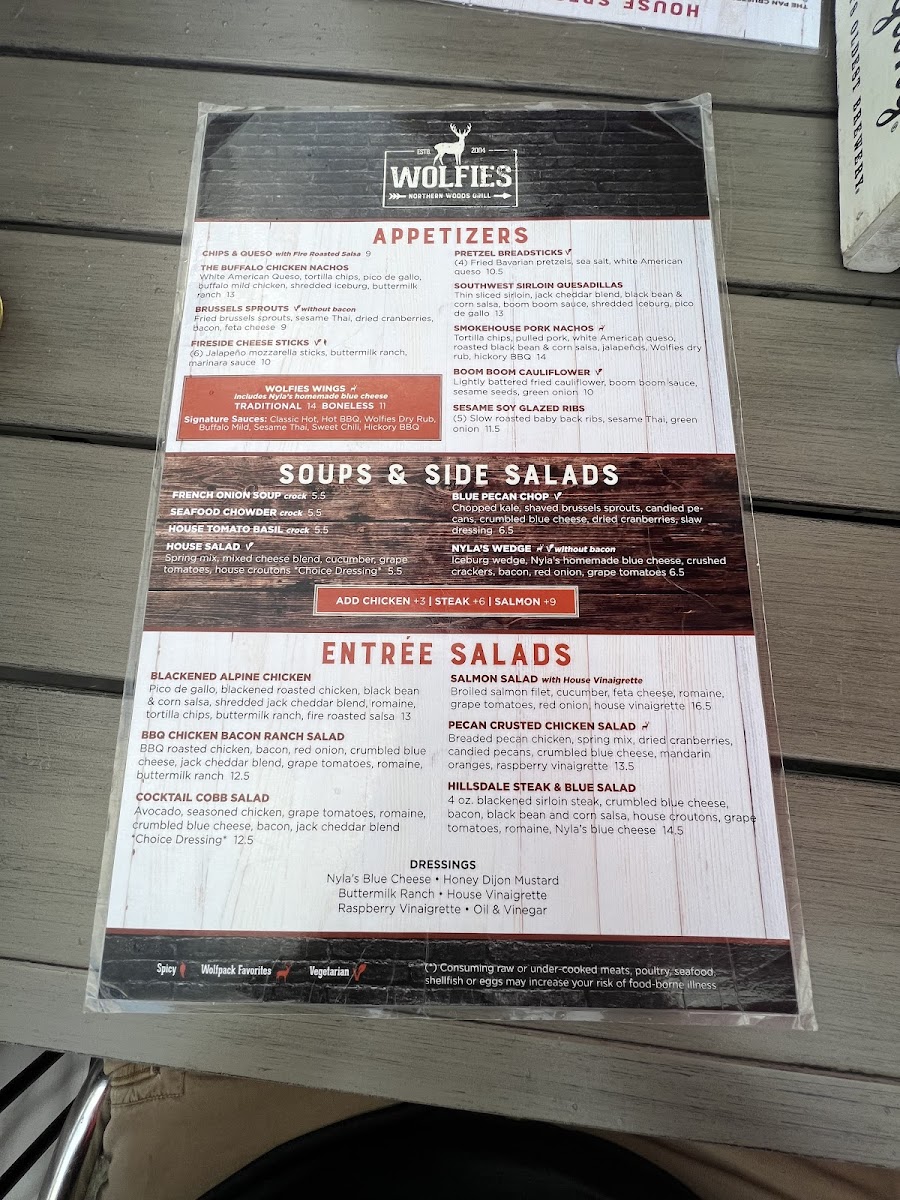 Don't overlook the Kid's Menu, offering delightful options for younger guests at $8 each. Whether dining indoors or enjoying the serene outdoor patio views, Wolfies Grill guarantees a memorable experience with its vibrant atmosphere and attentive service.